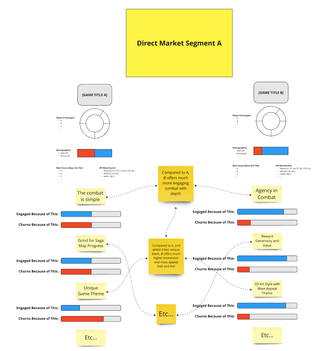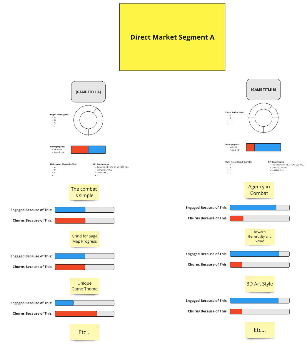 From those points onward, you’re able to use all the findings and notes you’re making in further defining your game’s fundamentals and pillars so that it would actually hold much stronger position from the ground up — from game design choices to product level strategy to go-to-market plans to engagement and monetization design as well as LiveOps strategies; which are all points I’m recommending diving deeply into with your USPs and value props, if you really want to win over your chosen segment(s). If you’re skipping these kinds of things in your product processes, you’re making gaps to your produced outcomes / deliveries, which results to debt you need to pay out at some point (or won’t even reach a payment point if things just don't work out for your game).