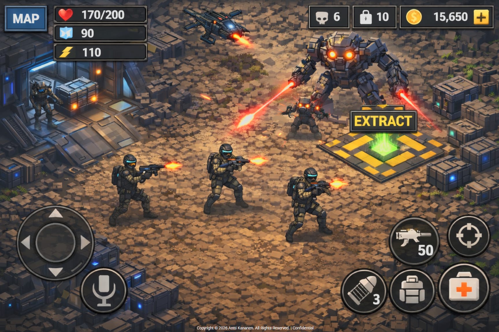 This allows you in one systemic shot to not just test and iterate a game to market wisely, but also over time spin new products out from same base, e.g., you could have an Extraction game acting as a spin-off base for your Roguelite game.