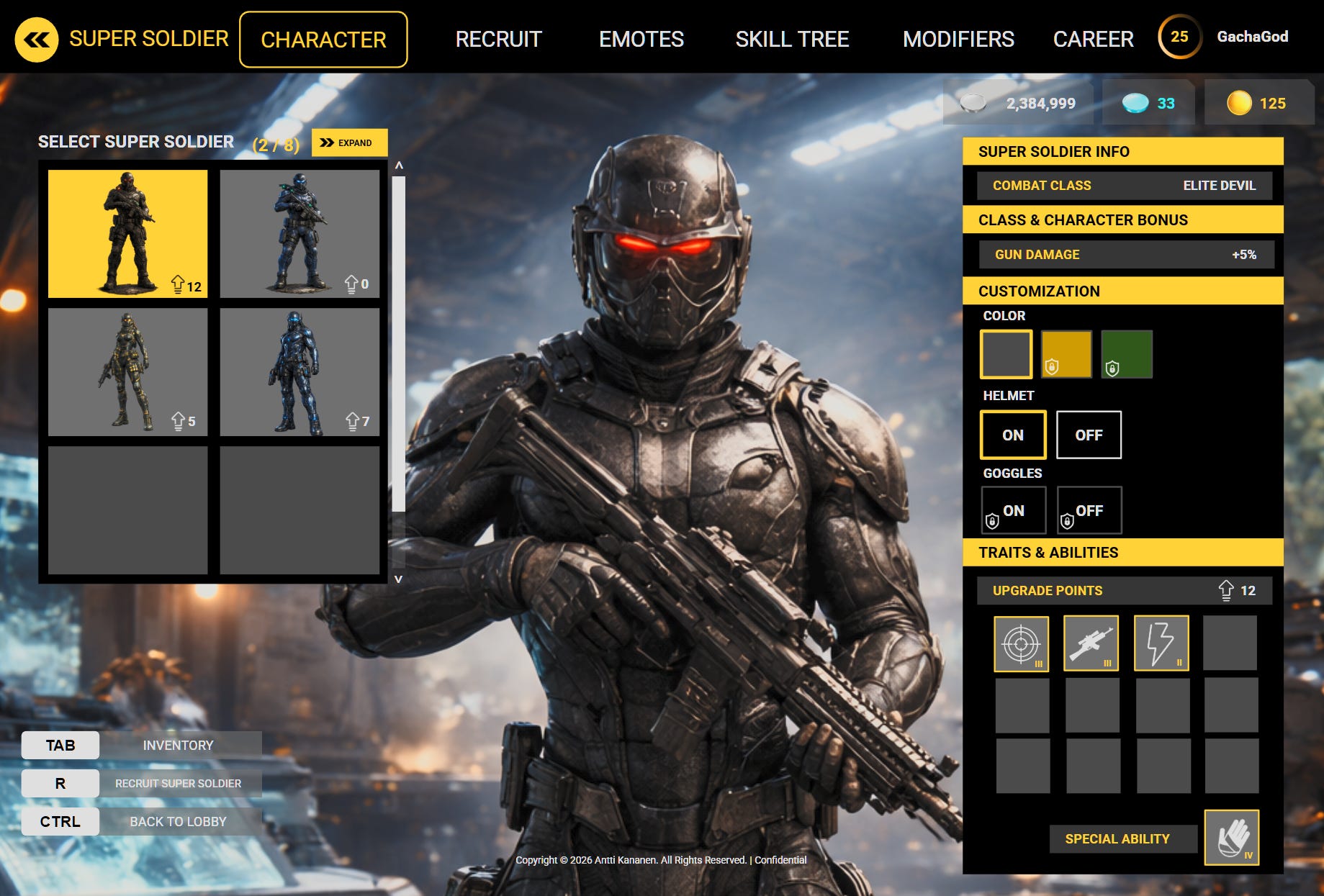 With adding e.g., Class and Roguelite systems, you get e.g.,: