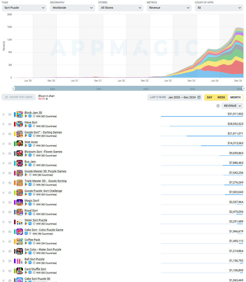 Sort Puzzle segment; Revenue (Source: AppMagic).