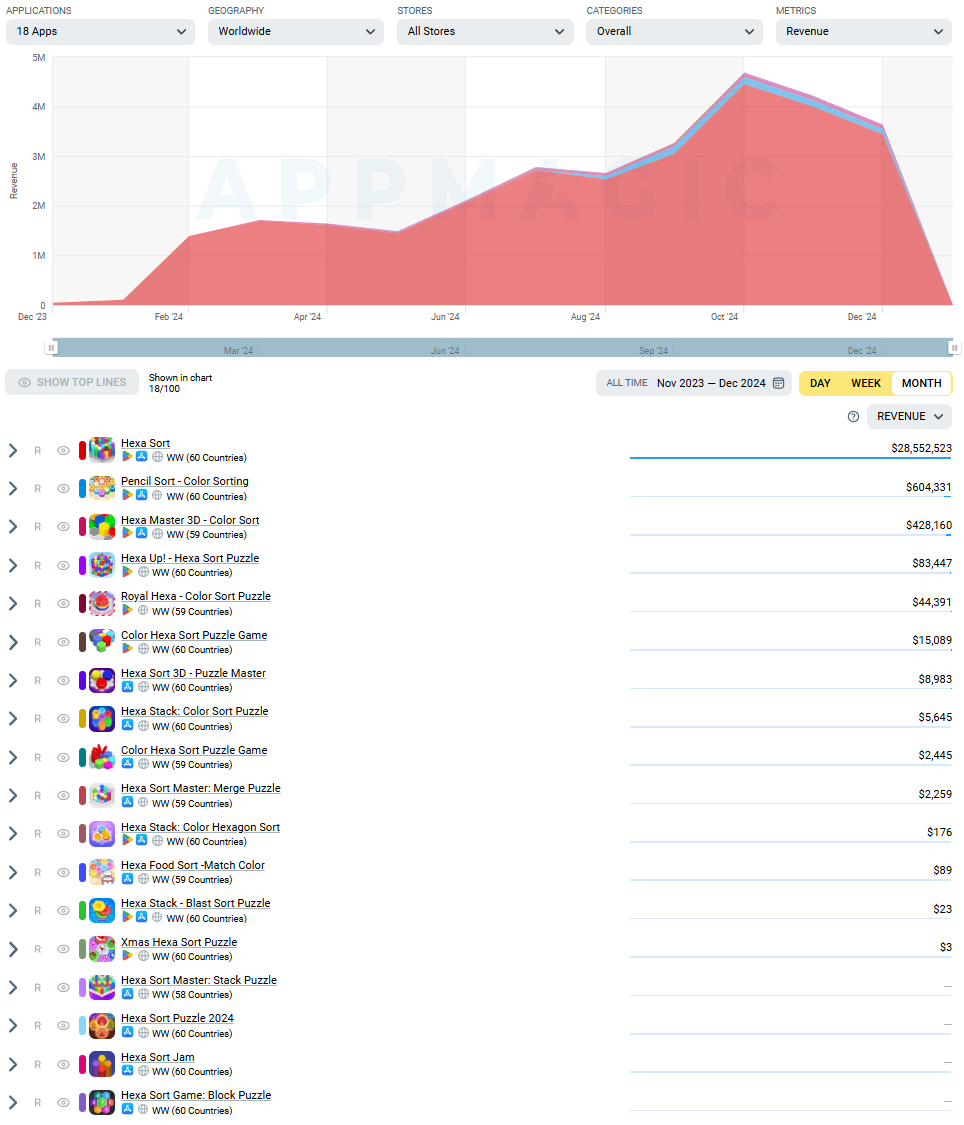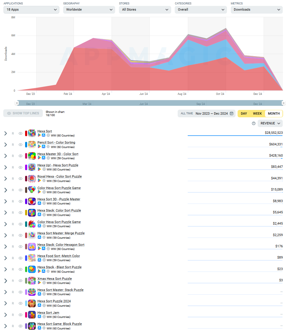 Note: This article has data from AppMagic, Hexa Sort and its competitors.